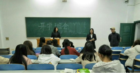 校园网讯 3月4日晚7点,外语学院各班在15栋自习室召开了新学期班会,此次班会由各班班主任主持,全体同学参加。