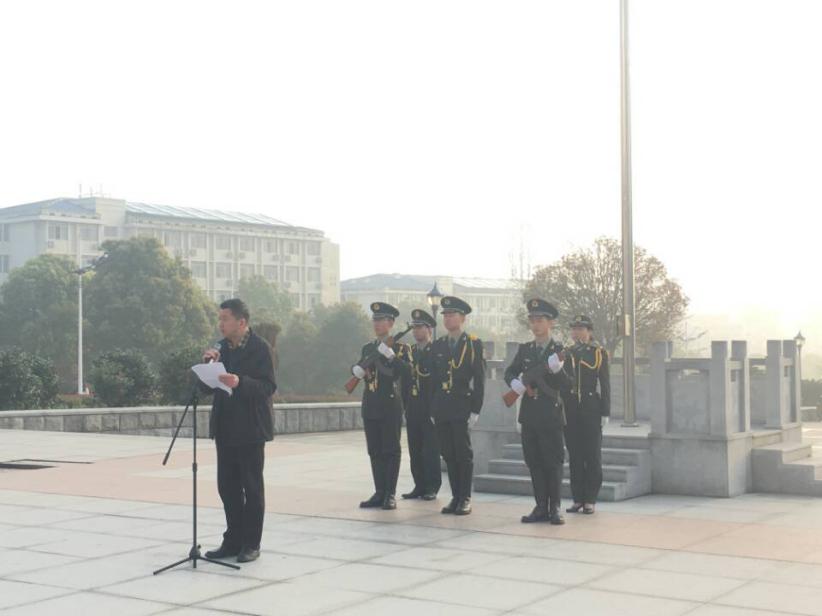 礼毕,15级公共事业管理专业郝静宜同学代表全院学生在国旗下作了“不忘初心,追逐梦想”的演讲,她以自己的人生感悟和成长经历,讲述了理想的引领和鞭策作用,通过高考前后学习状态、精神状态的比较,勉励同学们一定要珍惜时光,笃志立学,追逐梦想,不负美好青春。学院党总支书记阳鲁平作了“不忘初心,牢记使命”的专题讲话,讲话具体诠释了作为儿女、作为学生、作为青年应有的“初心”和“使命;指出了同学们在10年、20年、30年之后,国家的进步和发展为青年一代所提供的新机遇、新舞台、新未来;告诫同学们:作为今天的中华学子、明天的中国力量,决不能成为落伍者、决不能成为旁观者、决不能成为平庸者;希望同学们一定要有更前瞻的目光、更高远的理想、更有力的担当、更执着的追求、更加不懈的奋斗,在实现中国梦的生动实践中放飞青春梦想,在为人民利益的不懈奋斗中书写人生华章。