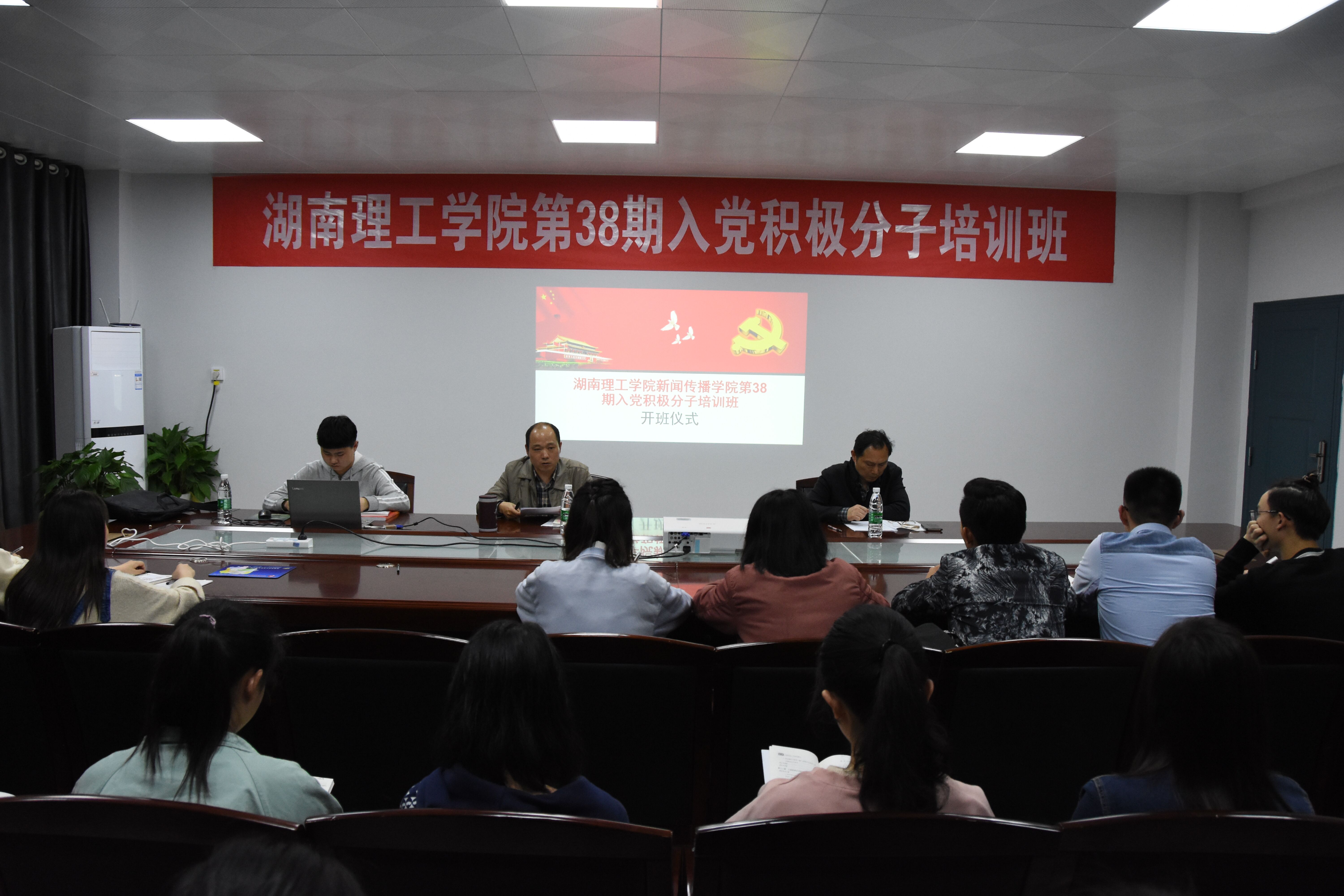 校园网讯 3月29日晚,新闻学院党总支主办的第38期入党积极分子培训班在9栋409室举行开班仪式,总支副书记张陈武主持,党总支书记方庭主讲第一课。