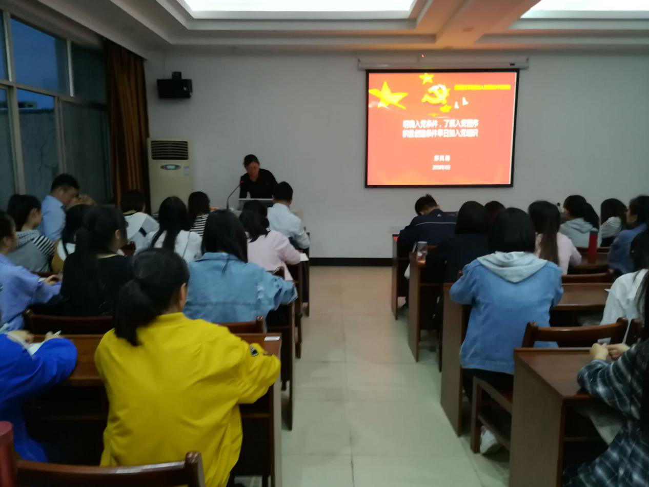 校园网讯 4月10日晚,经管学院在8301教室举办了第38期入党积极分子培训班第二次课,本次党课由湖南理工学院党校副校长郑凤梅老师主讲。经管学院党总支负责人、学生工作办公室部分老师以及经管学院全体入党积极分子听取了本次党课。