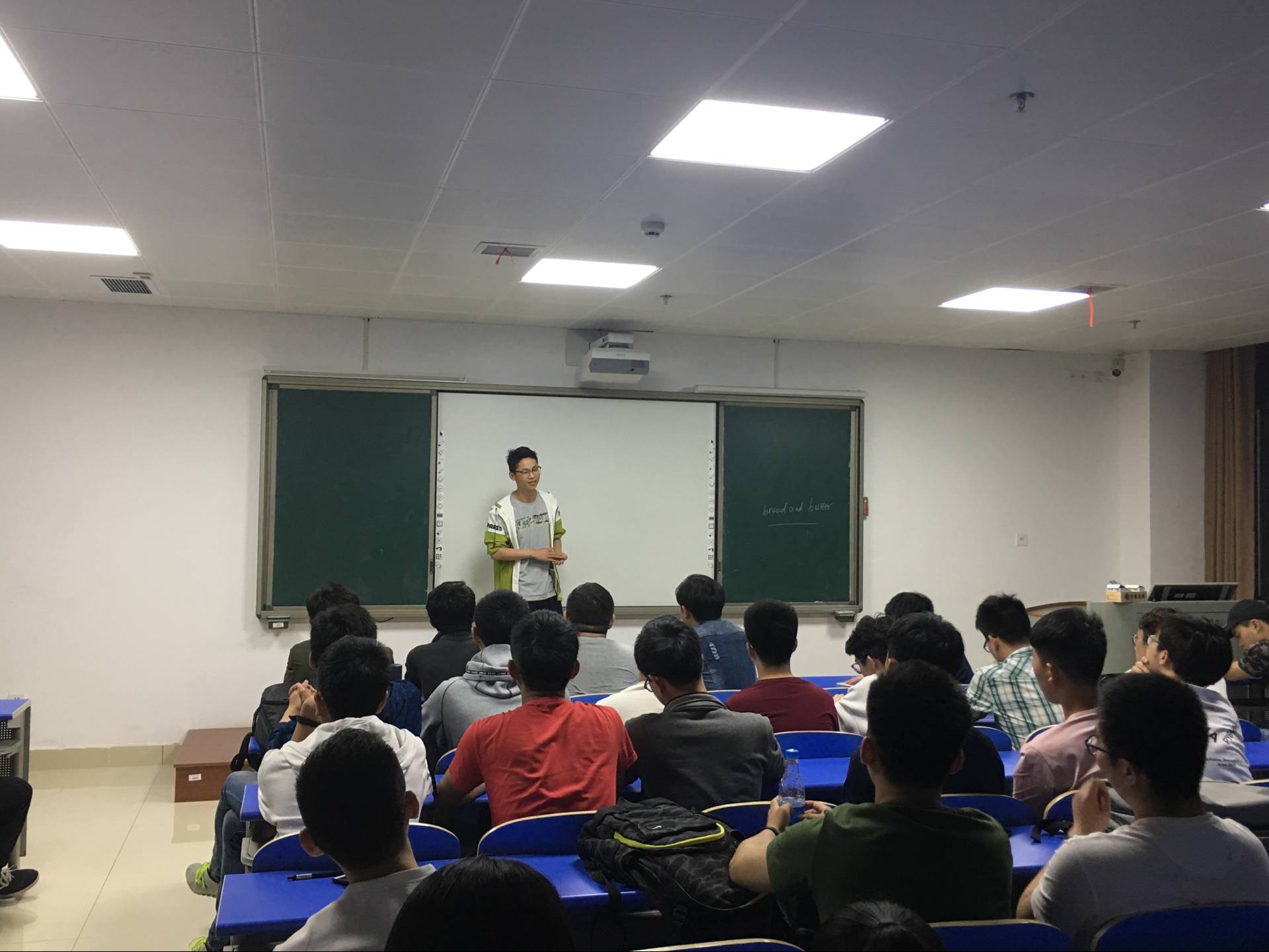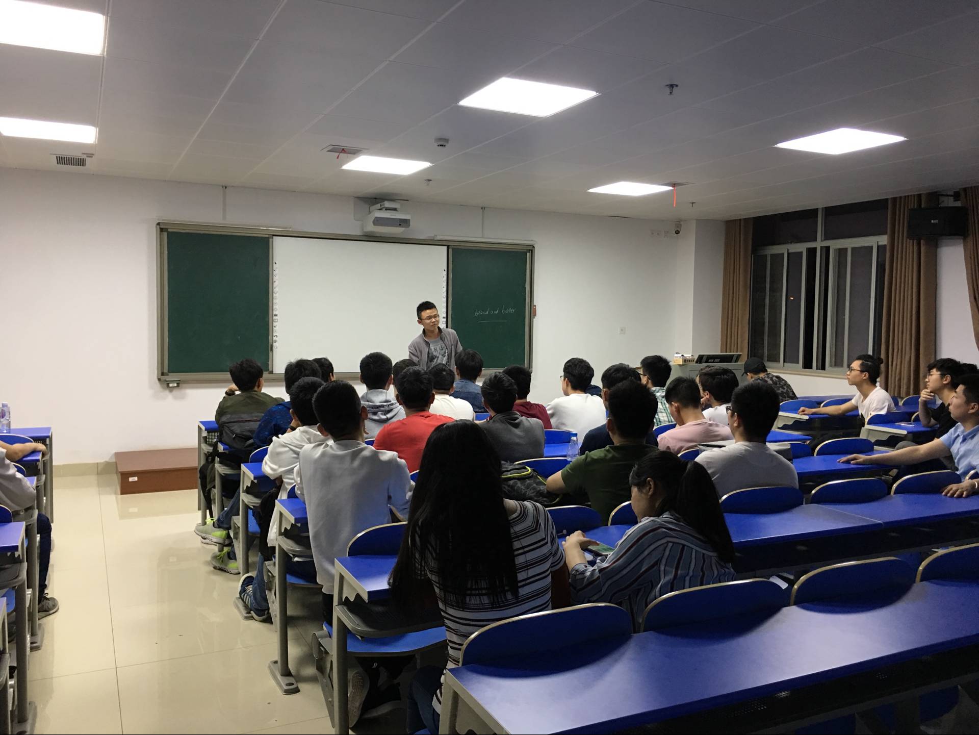 杨海从怎样选择考研学校以及如何复习两个大方面入手,详细地分享了他的考研经验。他提醒同学们在选择学校之时要根据自身实力,从专业排名、综合实力和地理位置入手,分别选择略高于自身实力、与实力对等和略低于自身实力的三个学校。并让同学们不仅仅要关注分数线,更要了解意向学校的报录比以及确定自己对于学硕和专硕的选择。在说到如何复习时,他重点提及了数学和英语的复习。他认为:数学要分阶段复习,在“刷真题”阶段要重视查漏补缺,整合各个题型对应的考点,随后,他分析了现在市面上著名的几大老师教学方法的区别及其优劣;英语也应该多做真题,在进行单词的记忆的同时,可以自行归纳核心。杨海学长分享结束之际,语重心长地送给了同学们一句话:考研并非易事,也不是唯一的路,不要盲目跟风。