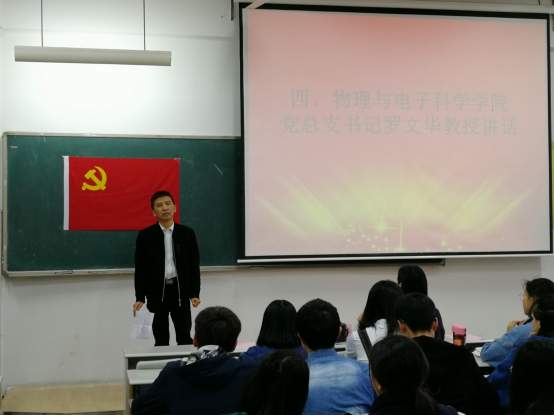 张国云副校长作为本期党校第一讲嘉宾。做了题为《怎样理解习近平新时代中国特色社会主义思想》的专题讲座。罗文华书记带领班级学员一起学习了中国共产党党章。孙亚辉书记做了端正入党动机讲座。张恒道为学员们讲解了发展党员的原则和程序。(责编/潘星羽)