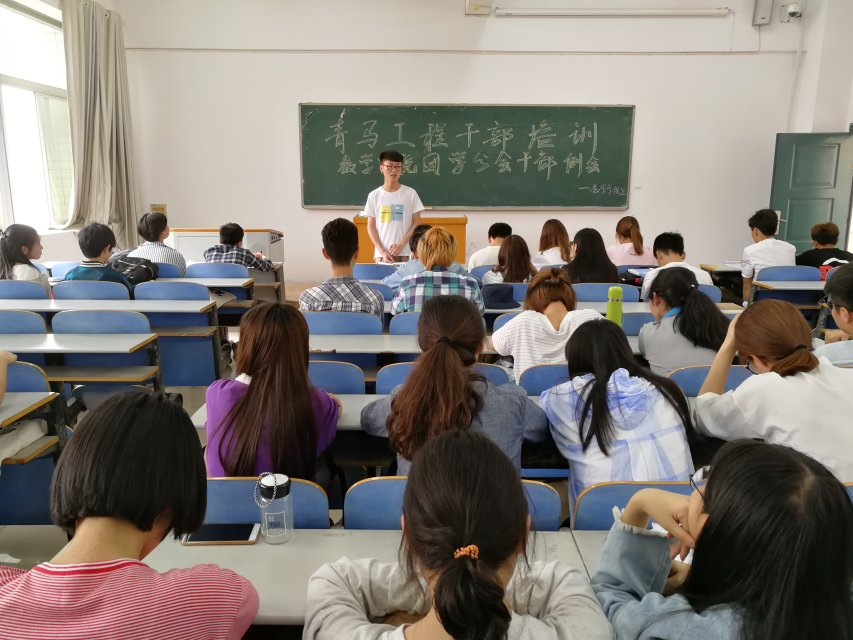 校园网讯 5月9日中午,数学学院团学分会于1509教室召开第21次青马工程干部培训例会。此次会议由团学分会主席黄勇主讲,17级各班班长、团支书及团学分会全体成员参加。
