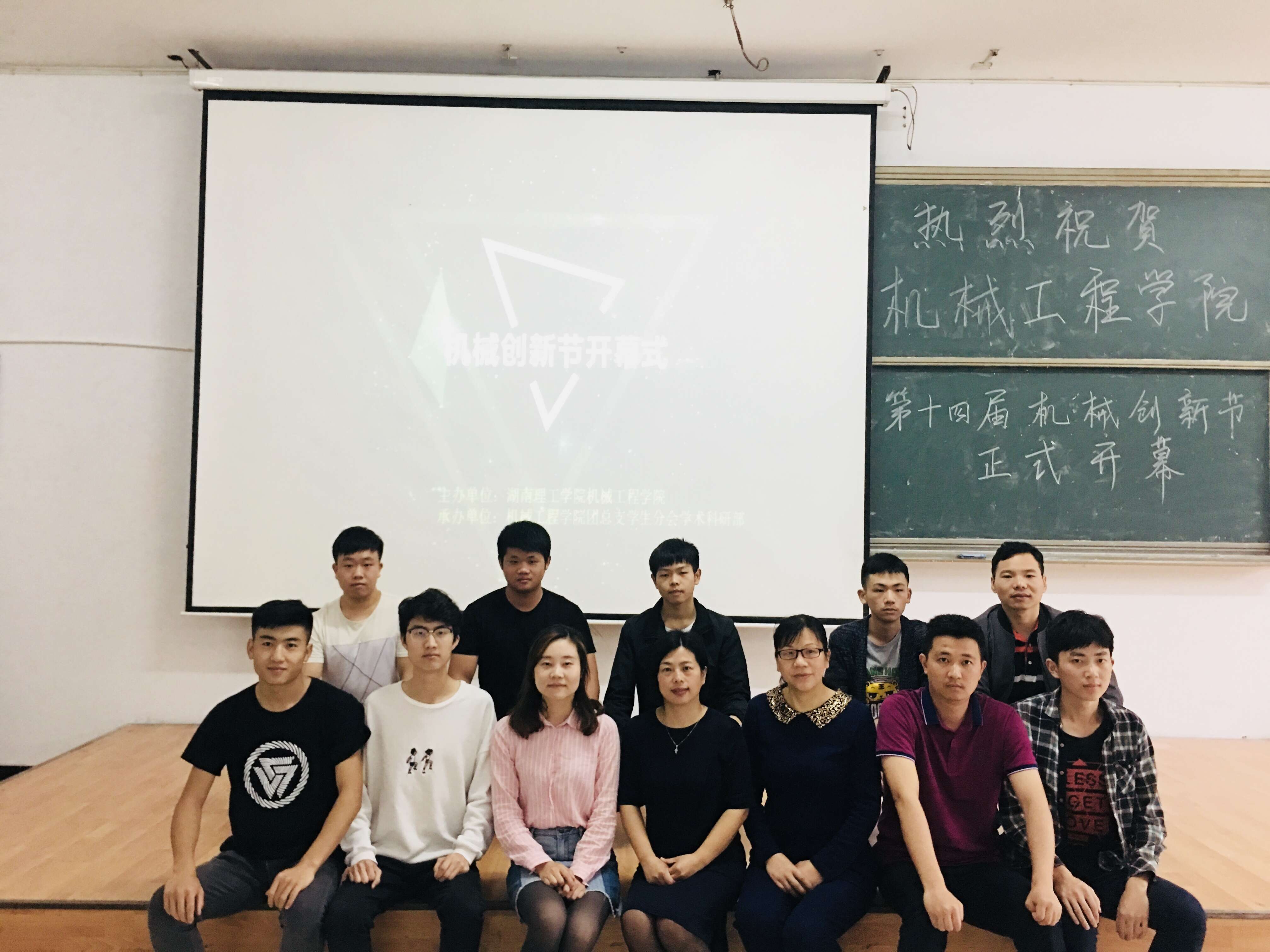 校园网讯 5月22日下午,机械工程学院第十四届科技创新节在7T1隆重开幕。党总支副书记周红熳老师、机械工程学院刘伟香老师、彭怡书老师、王子嘉老师、吁锤老师以及第八届湖南省大学生创新设计大赛获奖团队及150多位机械学子参加了开幕式。本届科技创新节的主题是“提升自主创新能力,培育机械特色人才”。