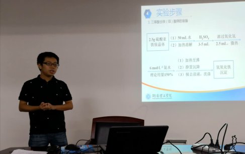 本次教学竞赛的老师为该院40岁以下专任教师和实验员,共23人参赛,在化工楼7511会议室举行,采用微课和PPT演示相结合的形式,通过教师的阐述,在10分钟以内完成实验的原理、步骤、操作要点及注意事项的集中讲解。