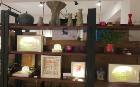 随后,进入工艺品陈列室进行参观,这个房间内的每一件工艺品都由湖南理工学院的学生手工制作完成。活灵活现的剪纸,小巧玲珑的玩偶,典雅古朴的纸灯......一件件都令人赏心悦目。