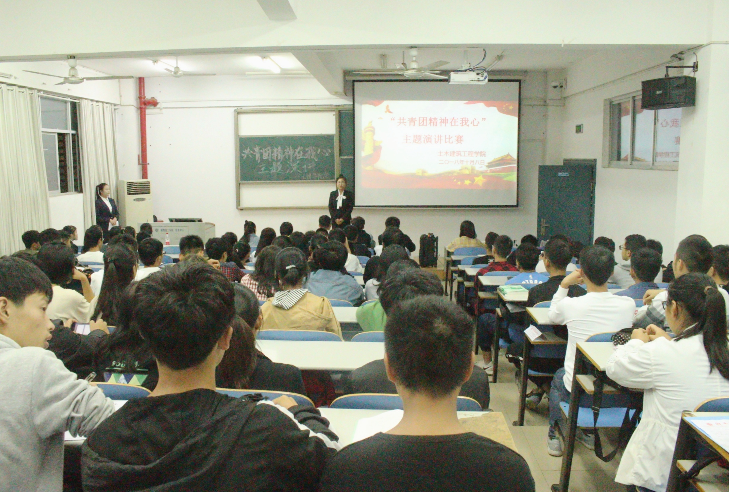 校园网讯 10月8日晚,土建学院“共青团精神在我心”主题演讲比赛于15304室举行。土建学院部分老师以及2018级学生参与比赛。