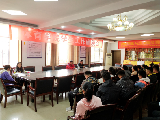 校园网讯 3月15日,教育部公布了2019年全国硕士研究生招生考试国家分数线。为了让所有通过考研国家线的同学们准备好复试,3月15日下午4:00,体育学院在二楼会议室召开研究生复试交流会,为同学们就复试、调剂的相关问题传授经验、指点迷津,从复试、调剂与心态等多角度向在场同学分享宝贵经验与建议。参加本次交流会的有体育学院党总支书记李佳川,院长周次保,毕业生辅导员易薇以及所有通过初试的同学们。