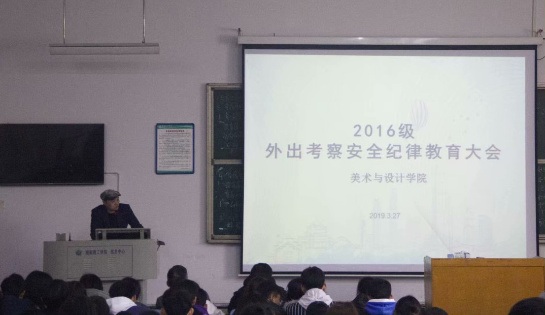 校园网讯 3月27日下午,美术与设计学院在3栋3201教室召开了2016级学生外出考察动员大会。党总支书记蒋晓城,副院长秦宏,支部书记、16级辅导员李一飞及各专业带队教师出席大会。