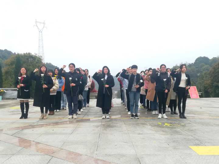 师生们来到烈士陵园,祭英烈仪式活动由学生第三党支部书记顾绍春老师主持,全体师生们在烈士纪念碑前集合,整齐列队、庄严肃立、手持鲜花。首先,向人民英雄纪念碑行鞠躬礼。随后,全体师生党员、预备党员在纪念碑前,在熊颖老师带领下面向党旗,庄严举起右手,集体重温了入党誓词。团学干部和学生代表在易萧老师带领下一起重温了入团宣言,并在激越、昂扬的乐曲中全体师生共同合唱了《中国共青团团歌》。