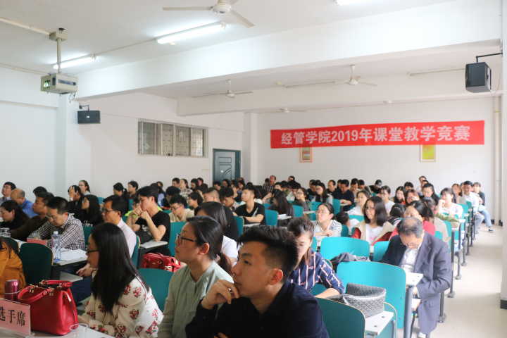 校园网讯 4月23日下午,经济与管理学院“2019年教师课堂教学竞赛——初赛”活动在8510教室举行。经管学院副院长田小勇,人力资源与管理教研室主任、院长助理易翠枝老师等7位老师担任此次竞赛评委,湛忠灿老师担任点评嘉宾,李涌来、曾敏、李迅、罗媞、徐明、林友谅和万嘉理共7位老师参加此次教学竞赛,经管学院各教研室负责人、部分任课教师和学生代表认真观摩了此次教学竞赛。