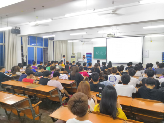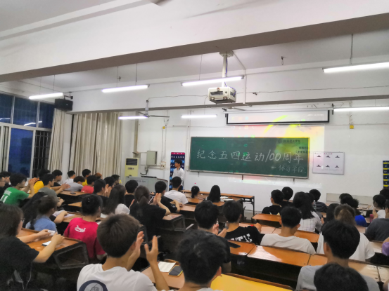 首先,全体起立,奏唱团歌。接着,学生代表刘雅岚带领全体同学宣誓,宣誓仪式结束后,全体同学观看了纪念五四运动的爱国影片。