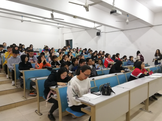 校园网讯 4月28日下午,外语学院于8T1召开大学生课前三分钟爱国朗读(第三季)动员大会,会议由学院党总支副书记石红芳主讲,全体辅导员出席。