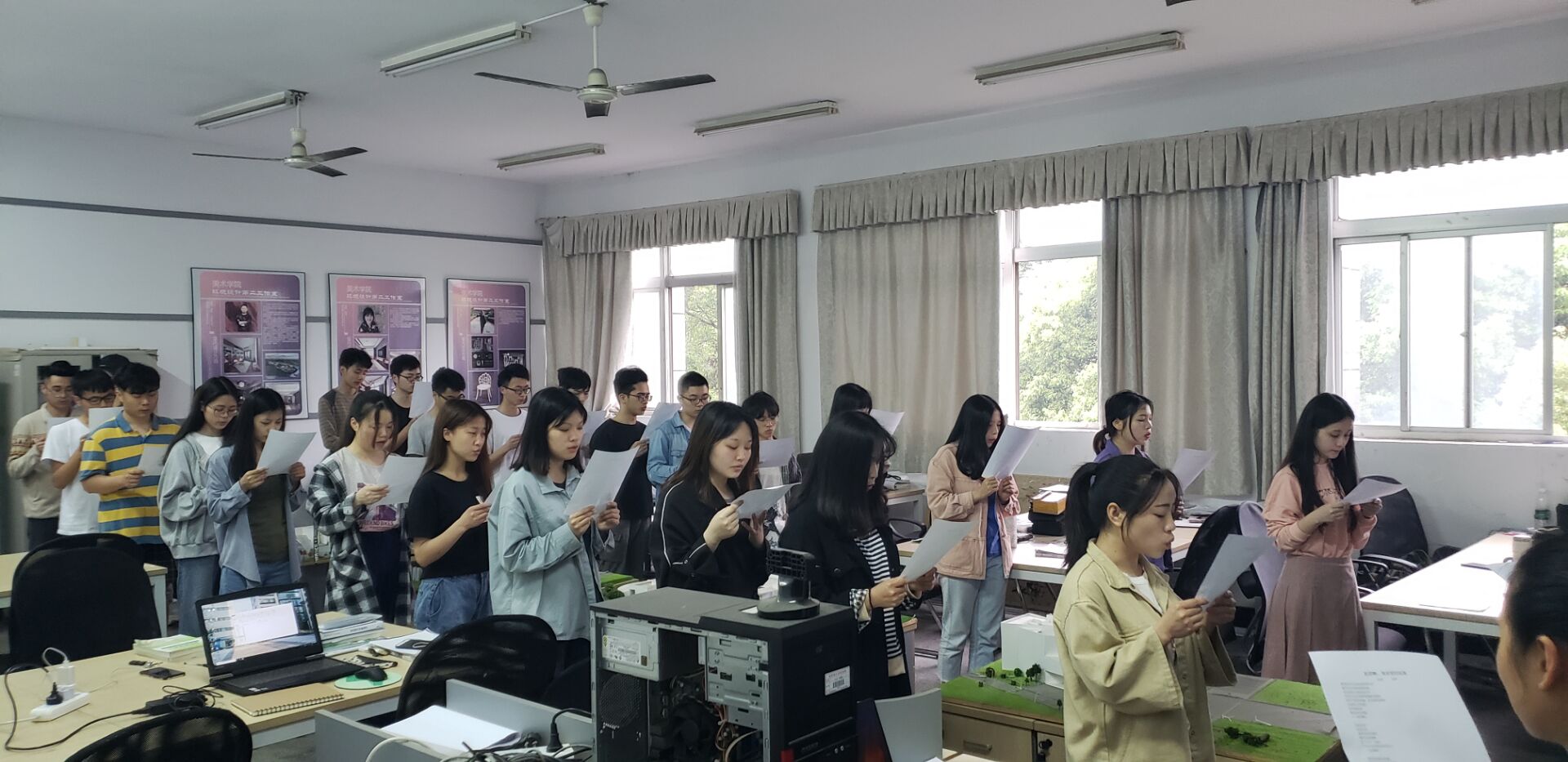 5月5日上午,美术与设计学院2017级环境艺术设计室内二班在3310教室举行了课前朗读活动。美术与设计学院党总支书记蒋晓城,学院党总支副书记、各年级辅导员老师参与了此次活动。在环设二班的朗读活动中,学生以真挚饱满的感情,声情并茂地诵读,深刻体现了为中华民族为觉醒而抗争的刚毅与决绝,抒发了当代青年牢记五四精神的时代内涵,以及为中华民族伟大复兴不懈奋斗的壮志豪情。