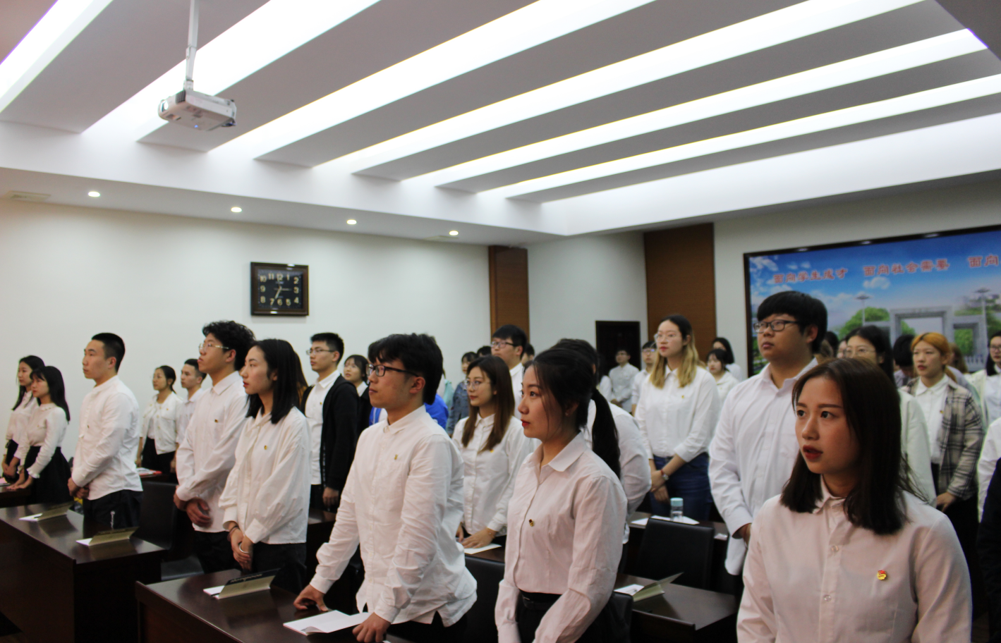 在《光荣啊,中国共青团》的歌声中,开班典礼拉开了帷幕。仪式上,李革新作了动员讲话。他指出,实施青年马克思主义者培养工程,就是要引领广大青年坚定理想信念,提升思想政治素质,成长为中国特色社会主义事业的建设者和接班人。他勉励同学们珍惜机会,认真学习,不断提升政治素养,增强“四种意识”,坚定“四个自信”,切实做到“两个维护”;同时希望同学们志存高远,坚定信心,铸牢理想信念,做坚定的马克思主义者,为中华民族伟大复兴贡献青春力量。随后,夏玉宁介绍了本次培训的课程安排,并强调了培训班的学习纪律与要求;外贸系王茜同学代表全体学员发言;院团委副书记孙羚嫚同学带领大家一起重温了入团宣誓。