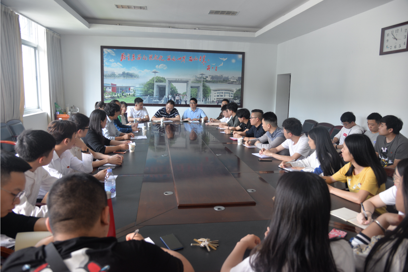 校园网讯 为建设文明离校之风气,让毕业生站好最后一班岗,5月31日上午,机电系于一号教学楼1219会议室召开了毕业生党员座谈会。学校纪委副书记、南湖学院纪委书记张力军应邀出席本次会议做指导交流工作。会议由机电系党总支书记喻立平主持,机电系全体教工党员和毕业生党员参与其中。