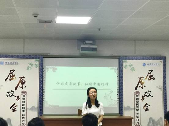 校园网讯 6月11日晚,中文学院在12409举办屈原文化研究之屈原故事会活动。校团委书记薛静,中文学院副院长封传兵、李有梁参加了活动。本次活动是由校团委和中文学院共同发起,得到湖南省屈原文化研究基地、美设学院、音乐学院的大力支持。作为备战全国大学生“挑战杯”决赛的热身活动,意义在于激励我校青年学子积极加入屈原文化研究和推广事业,为中华优秀传统文化的传承与弘扬贡献智慧和力量。
