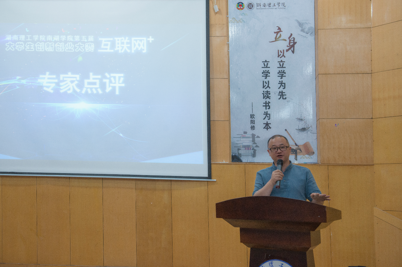 校园网讯 6月12日晚上,南湖学院第五届“互联网+”大学生创新创业大赛在东院综合楼学术报告厅举行。南湖学院副院长曾晓剑、副院长李革新、各系主任书记、各办主任和200余名师生共同参加了本次活动。大赛特邀岳阳市优秀创新创业导师和湖南理工学院专业指导老师担任评委。