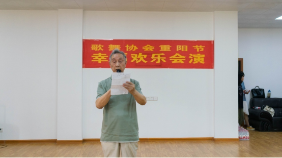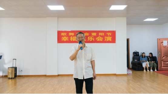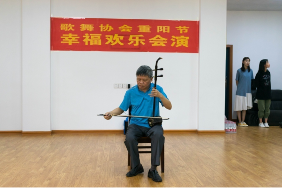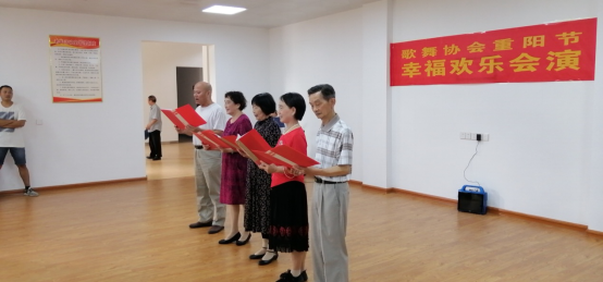 2019年9月17日下午,离退中心歌舞协会组织的重阳节幸福欢乐聚会演出在学校东院老年活动中心成功举行。