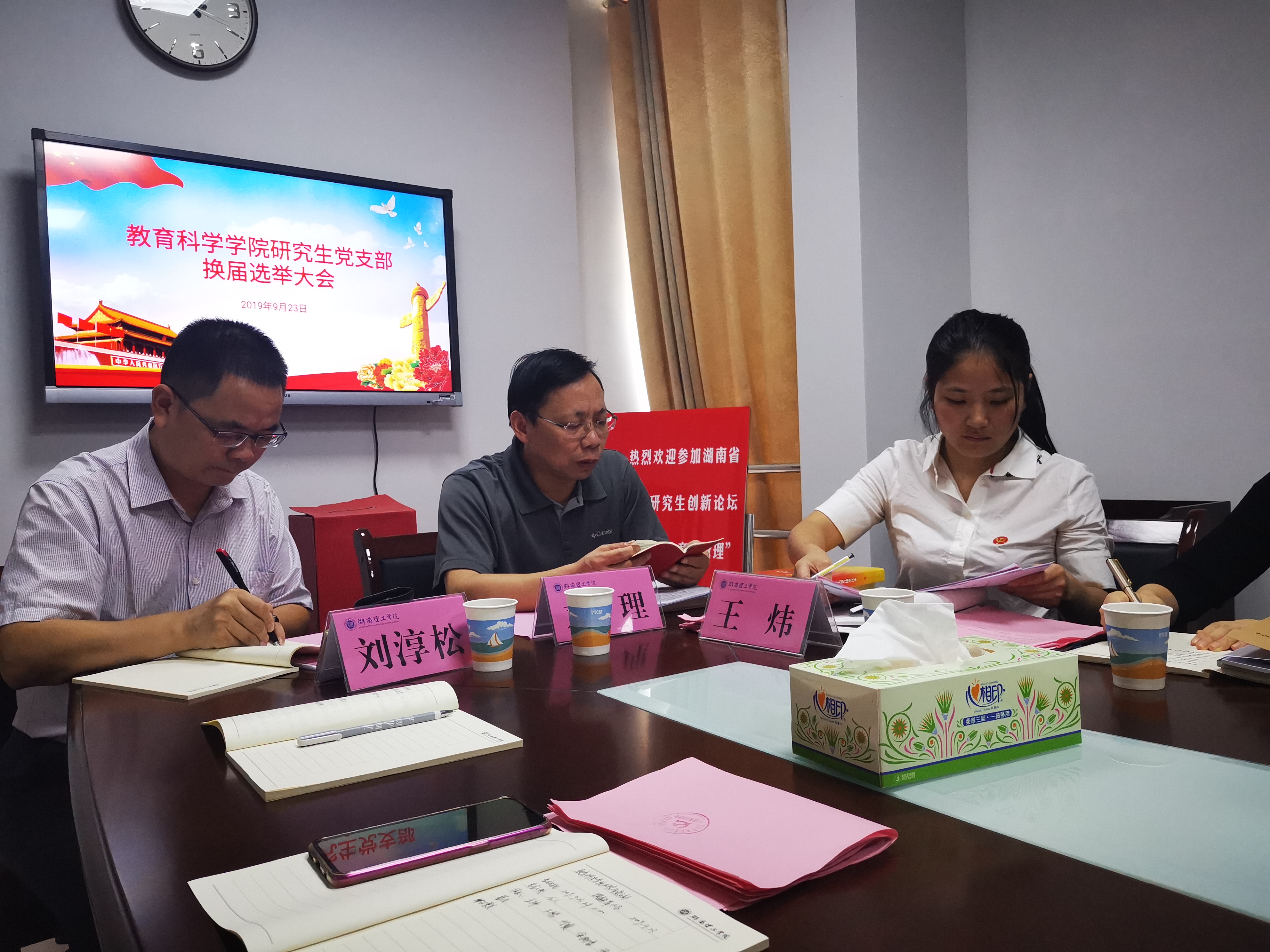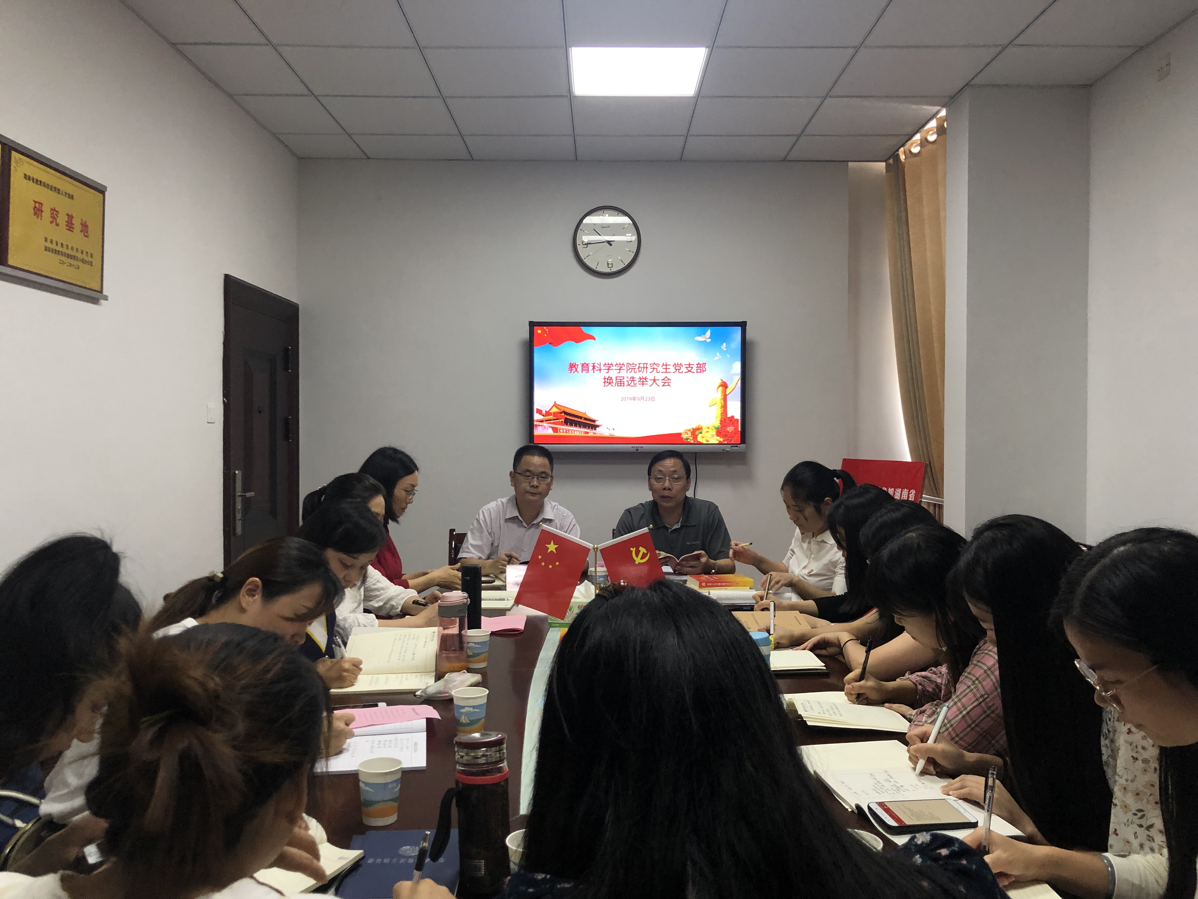 校园网讯 按照《中国共产党章程》《中国共产党普通高等学校基层组织工作条例》《中国共产党基层组织选举工作暂行条例》及《中国共产党支部工作条例(试行)》的有关规定和要求,遵循学校党委的统一部署,9月23日上午,教育科学学院研究生党支部在综合楼314会议室召开全体党员大会,选举产生了学院新一届支部委员会。会议由学院研究生党支部书记王炜主持,学院党总支书记刘淳松,院长、党总支副书记刘理以及2019级研究生党员参加此次会议。