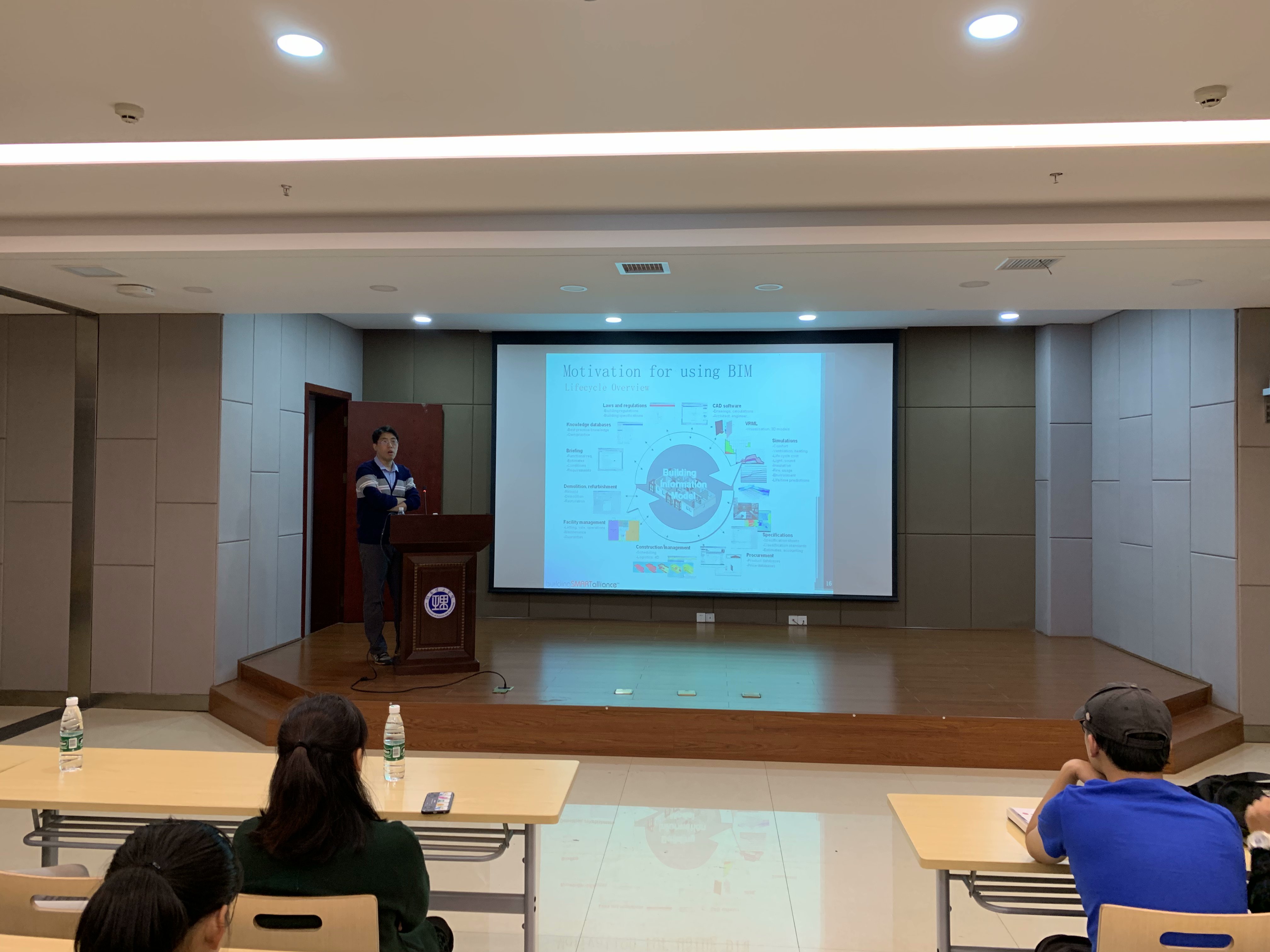 校园网讯 10月22日下午,土建学院于图书馆一楼学术报告厅举办“Learning from BIM”专题讲座。本次讲座邀请了弗吉尼亚理工大学博士陈奡担任主讲人,长沙理工大学教授刘晓平、湖南理工学院土建学院副院长刘晓红、工程管理教研室主任刘康兴、曾永庆博士及部分学生参加讲座。