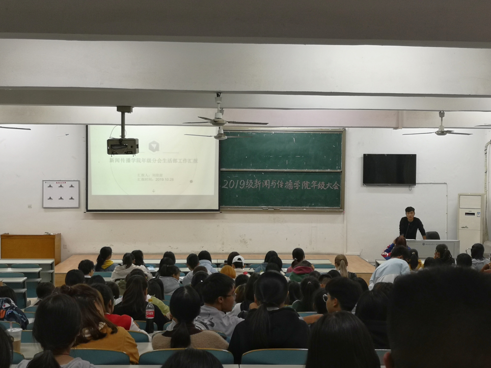 校园网讯 10月28日下午,新闻学院2019级年级大会在9t1召开。新闻学院党总支副书记潘昕,19级辅导员周虎田,各助理班主任和全体新生参加本次会议。