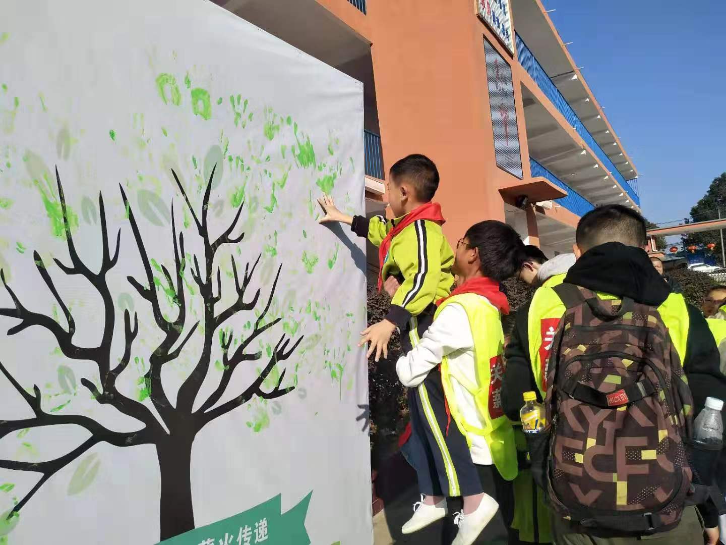 活动中,我校大学生郭思慧同学结合自身经历作了发言,讲述了自己作为一名大学生,参加志愿活动的感想和体会,同时,全体志愿者宣读誓词,呼吁大家传递爱心、营造希望,将爱和温暖薪火相传。接着,大家在现场进行了一次火炬传递的长跑,火炬传递完毕,32名志愿者携手奇家小学的孩子们,将手掌印在了签名墙的希望树上。