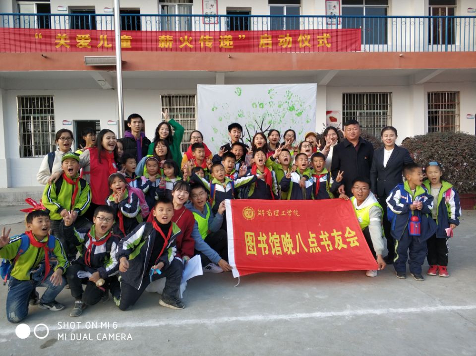 校园网讯 11月19日,“关爱儿童,薪火传递”启动仪式在奇家小学拉开帷幕。图书馆志愿者协会和“晚八点”书友会共32名社团成员在图书馆曹小佳和王卓尔两位老师的组织下,与湖南省教育局、岳阳市妇联、岳阳市妇联家庭教育基地厚朴心理咨询室及奇家小学全体师生,共同完成了一次爱的传递。