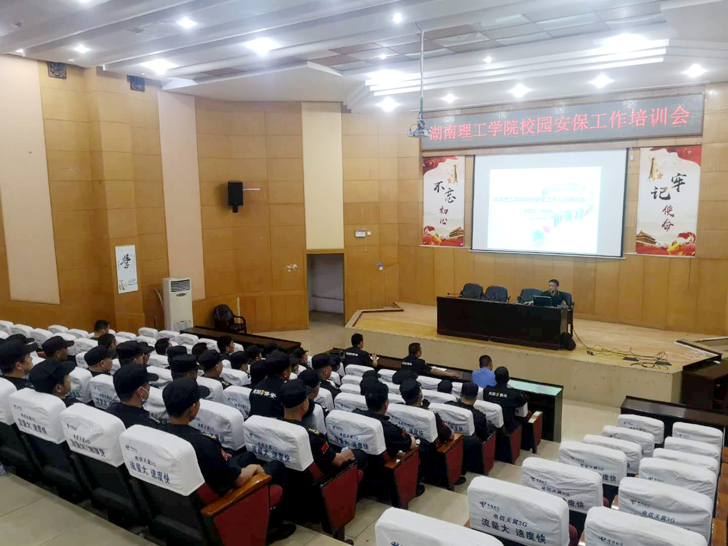 校园网讯 5月17日下午晚上7:00,保卫处在综合楼学术报告厅召开校园安保人员专项工作暨培训会,保卫处处长姜剑鸣,副处长谭良机,东、南两院安全管理中心的全体教职工以及全体保安人员参加会议。