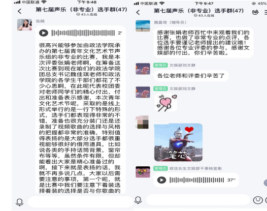 校园网讯 为进一步提升大学生的综合素质,丰富校园文化生活,充分展现我校学生同心战疫的坚定决心和积极向上的精神面貌,由校团委主办、政法学院承办的“湖南理工学院第七届青年文化艺术节声乐(非专业)决赛于6月6日通过腾讯会议形式在线上隆重举行。来自信息、体育、外语、中文、土建、经管、政法、物电等学院的13支参赛队伍同台竞技,精彩纷呈。学校大学生艺术团指导教师张娟、政法学院团总支书记魏嘉琦、音乐学院2017级声乐专业学生席龙方、大学生艺术团杜晓雨及往届优秀选手担当此次决赛评委。