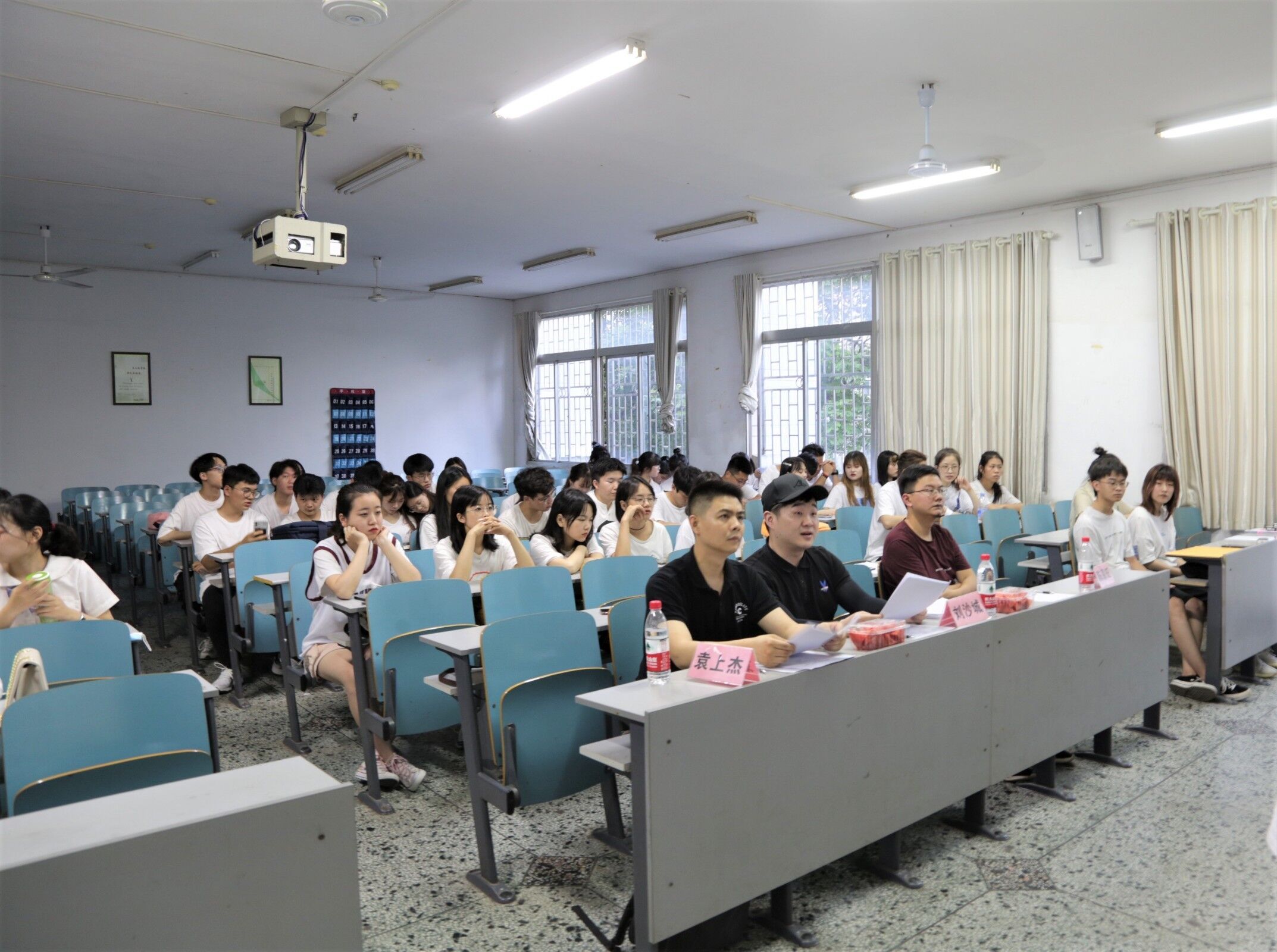 比赛分为场上汇报和答辩两个环节。活动伊始,各参赛团队的项目负责人依次上台为自己的项目做简单的汇报,随后,评委老师根据项目的可实行度,提出相关问题及建议,开拓同学们的创新思维。各参赛团队的项目立足专业基础,形式新颖、多样,充分体现出当代大学生创新素质水平。