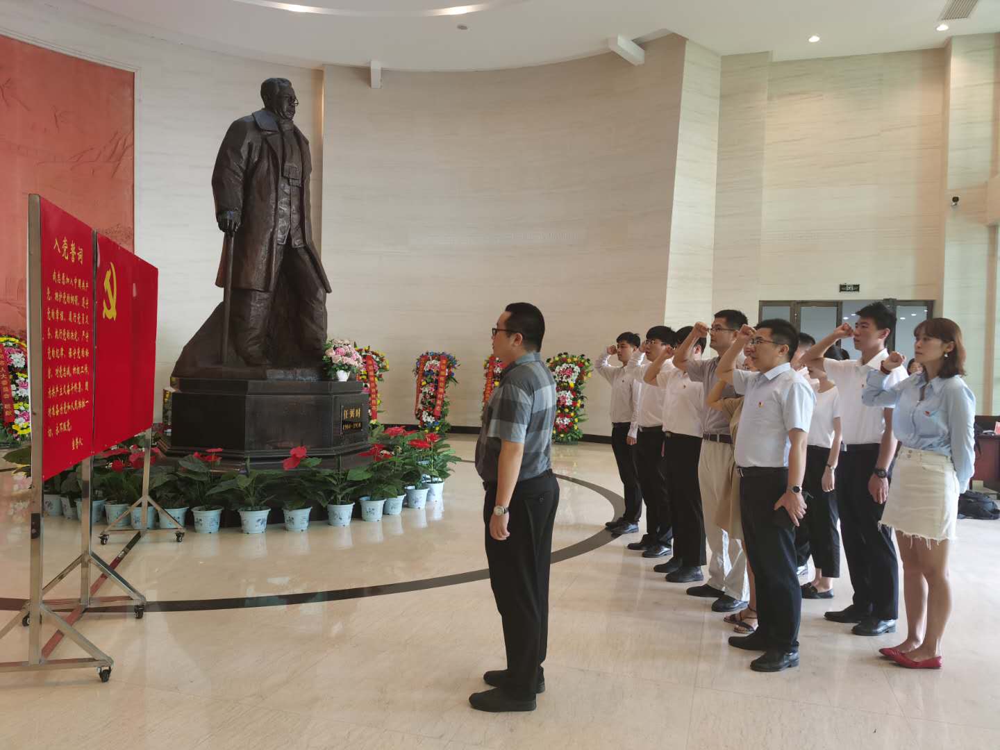 在任弼时纪念馆、杨开慧烈士故居和新墙河抗战史实陈列馆等地,全体人员深入了解了革命烈士的光辉事迹和抗战史实,深刻感悟了中国共产党人为党和人民的事业抛头颅、洒热血的伟大情怀和坚强意志,加深了对革命历史的理解和认知。在党旗面前,全体参加活动成员重温入党誓词,用铿锵有力的声音彰显永恒初心,牢记党员意识,永葆党员本色。参加此次活动的新进辅导员葛传才表示:“通过这次参观学习,我再次被革命先烈抛头颅、洒热血,不畏牺牲的精神所深深感染,我是一名退伍军人,也是一名即将走向工作岗位的新辅导员,我要把红色的革命传统带回自己的教育岗位,让学生一起铭记历史、奋发图强,让优秀革命传统代代相传,成为实现中华民族伟大复兴的永久动力。”