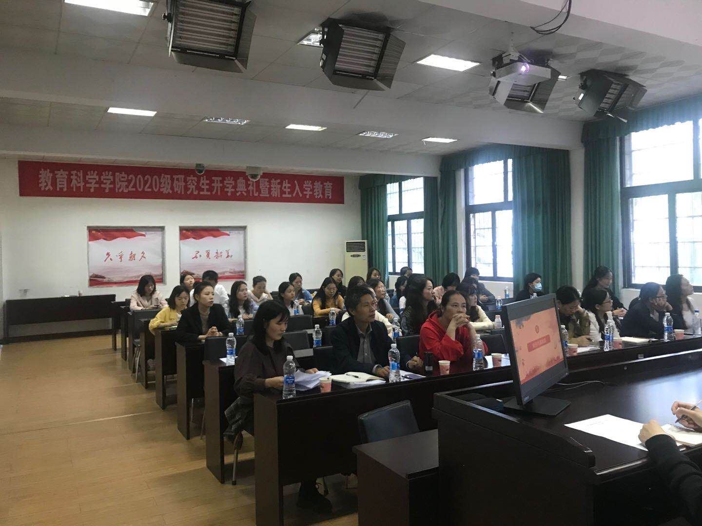 校园网讯 9月25日上午,教育科学学院在1教学楼1302教室举行2020级研究生开学典礼。学院领导班子成员刘理、刘淳松、彭阳红,研究生导师及教师代表、研究生辅导员、学位点秘书及2020级教育管理和小学教育全体研究生参加。