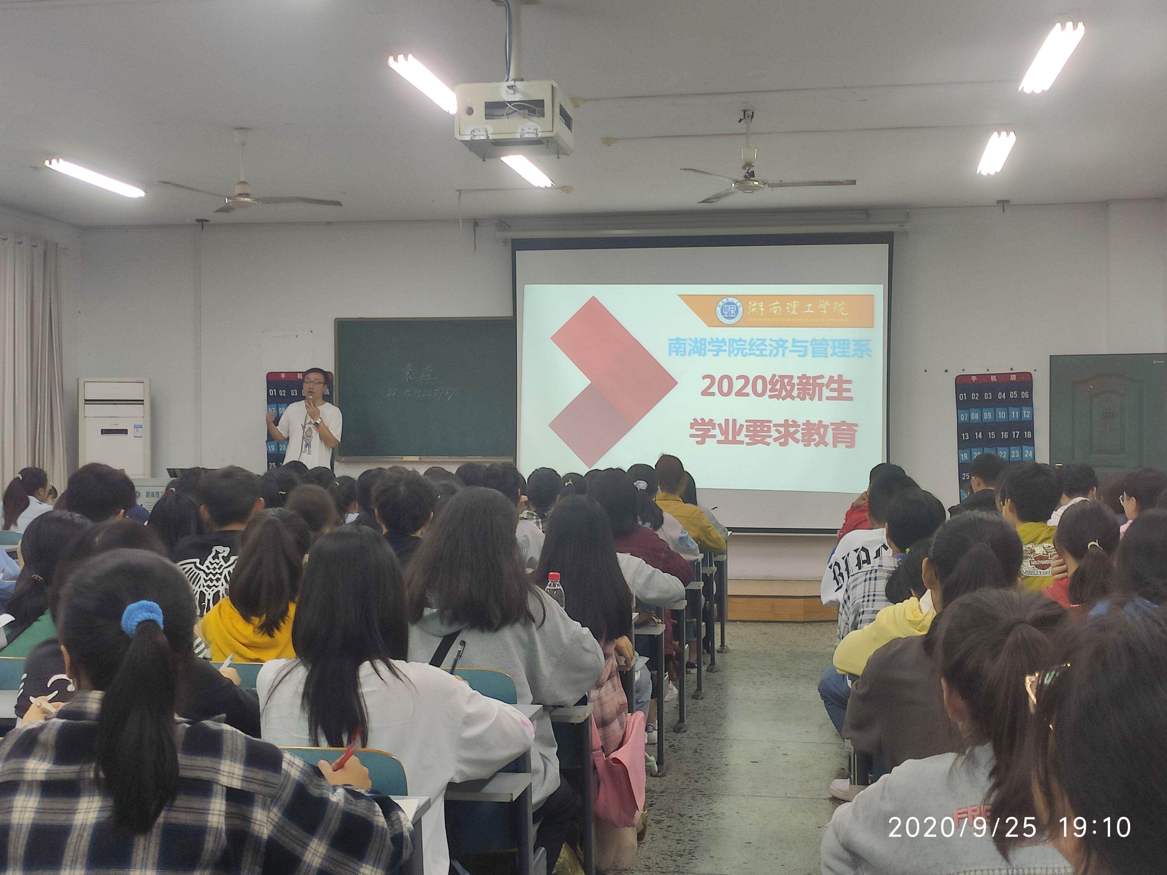 校园网讯 为帮助2020级新生系好大学学业上的第一粒扣子,预防大学生出现对毕业以及学位授予等条件“应知不知”的情况发生。经管系于9月25日晚开展新生学业要求教育讲座,系教学秘书秦垚担任主讲人,新生助班以及2020级全体新生参加讲座,讲座由2020级新生辅导员晏妮主持。