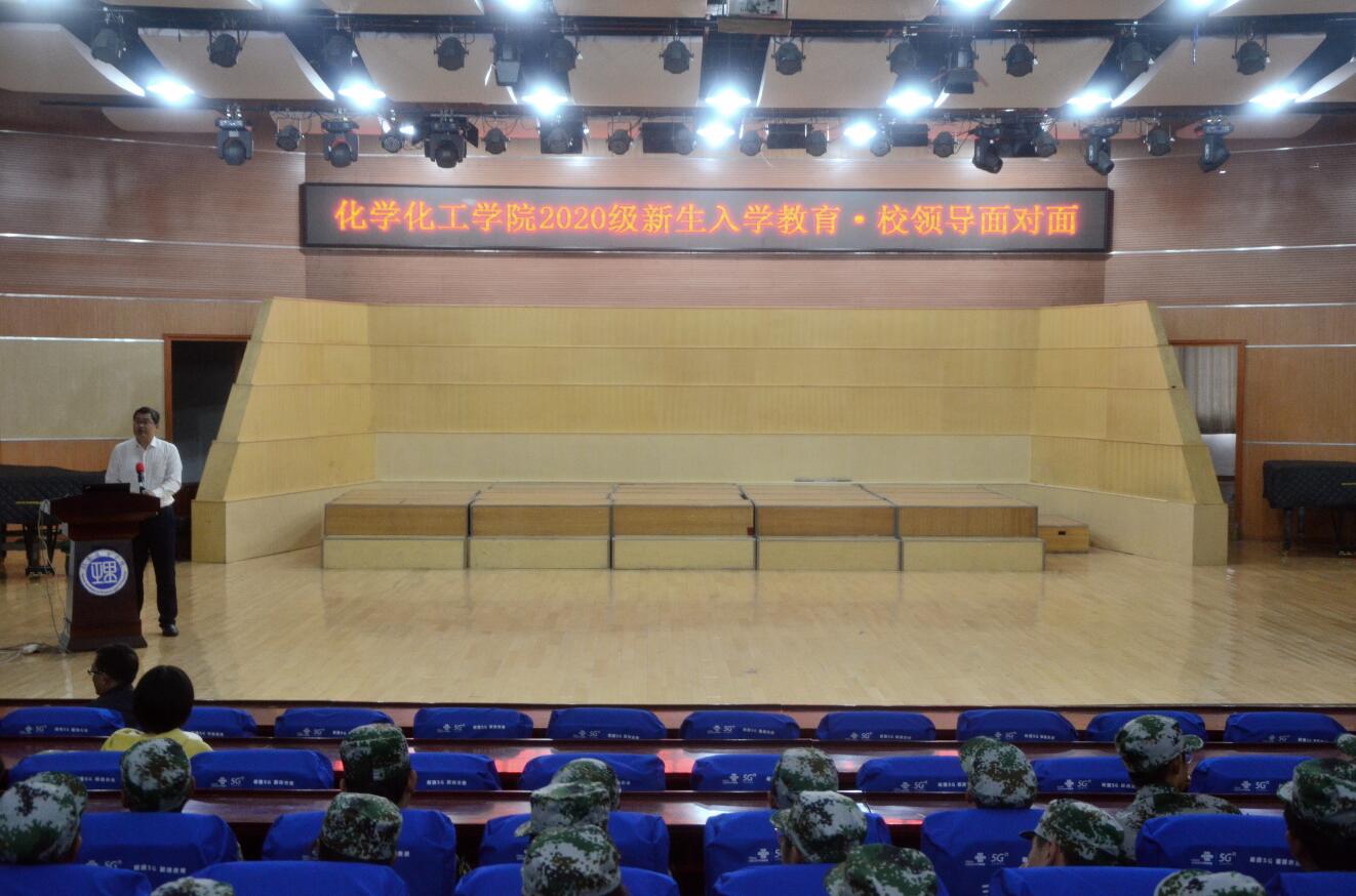 校园网讯 10月13日下午,化学化工学院在音乐楼音乐厅举行2020级新生入学教育,学校党委委员,纪委书记谢贵辉应邀与化工学院2020级新生“面对面”进行入学教育,院党委书记刘立刚、党委副书记李会元、院长周从山、全体辅导员、班级助理、2020级新生参与本次会议,会议由院长周从山主持。