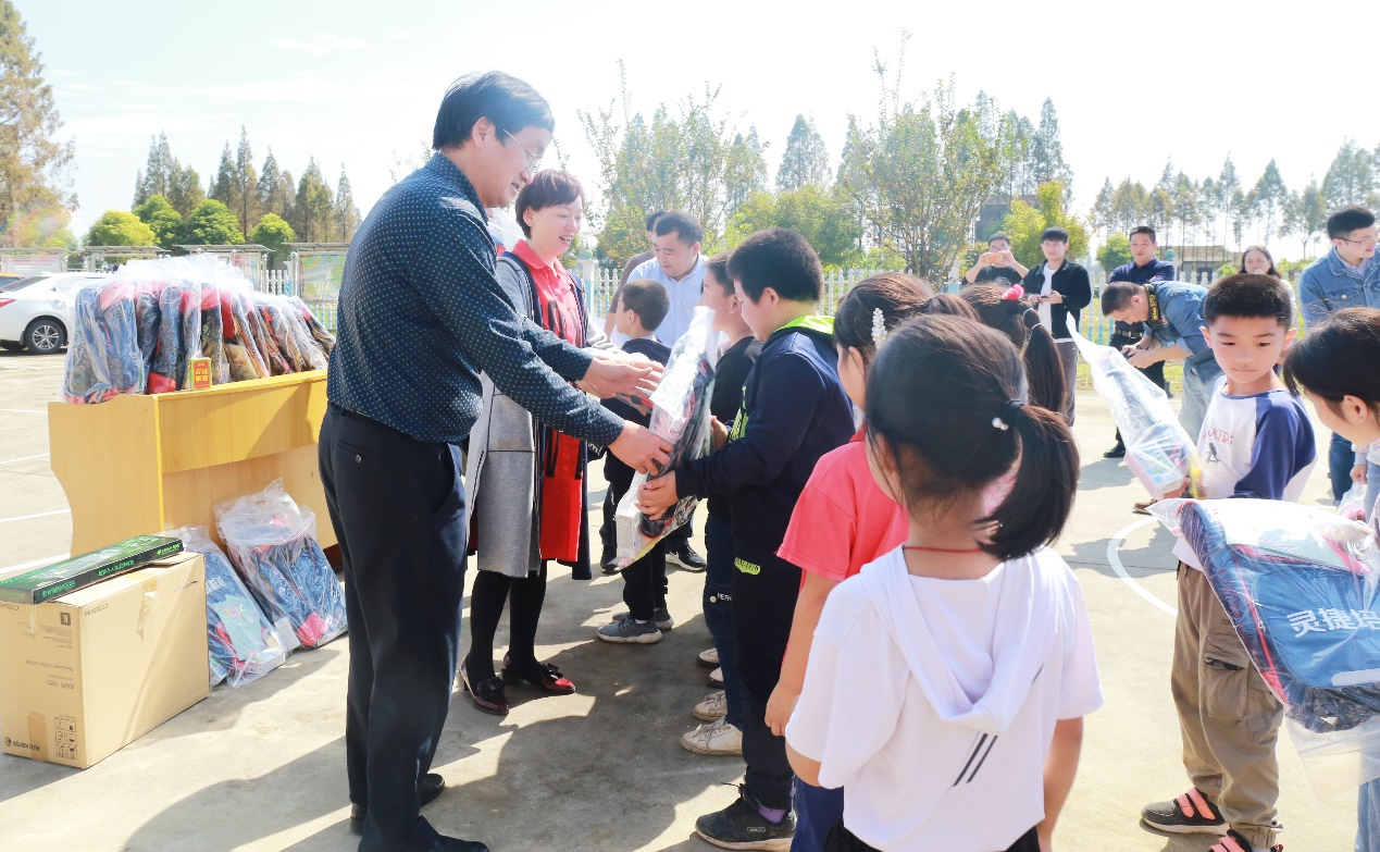 捐赠仪式上,信息中心党支部书记谢军作为代表为优秀贫困学生捐赠了3000元慰问金,她在讲话中说道“看到同学们灿烂的笑脸和一双双期待的眼睛,我们心里充满了使命和责任,更加意识到这次活动不光是一次教学理念、教改信息的传导,不光是教学方法的交流,更是一次心与心的碰撞,是一次温暖的互动,是一次美好的体验”。接着,党员们把捐赠的书包、课本和食品发放到每一位孩子的手中。当孩子们礼貌的接过物资,一声“谢谢老师”,让我们感到质朴而温暖!之后,信息中心的技术员为学校老师安装与维护好捐赠的电脑,并对其进行了简单的培训。