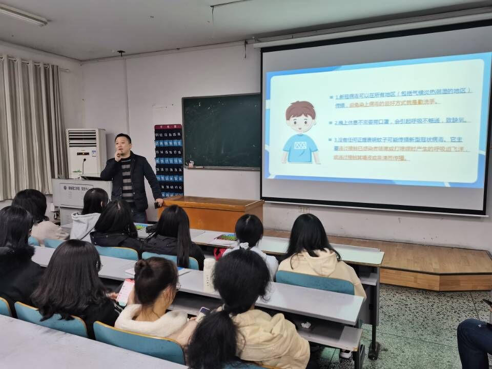 “传染病预防知识讲座”通过线上线下结合的方式举行,学院特邀岳阳市疾控中心王石麟、连戈桦两位专家为2020级学生授课,讲座主要围绕艾滋病预防、新冠肺炎预防等内容展开,重点介绍了艾滋病的危害、传播途径、防治方法以及防护措施的重要性。