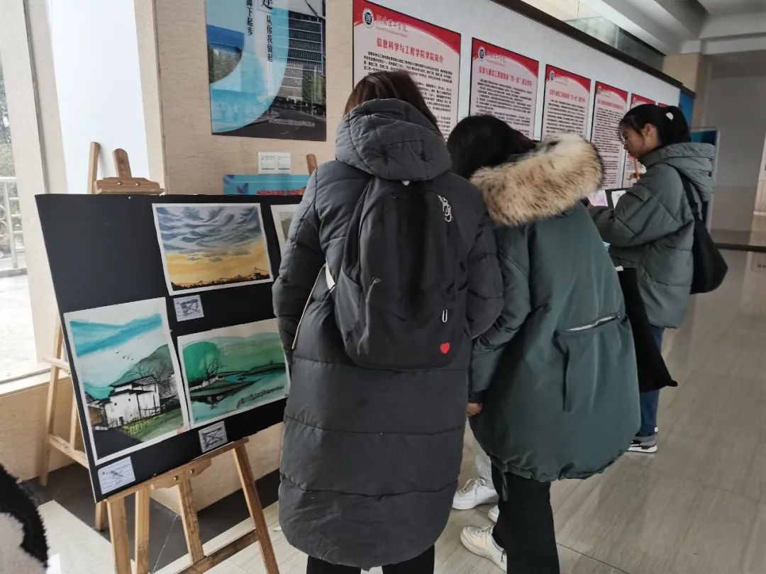 校园网讯 12月8日至15日,土建学院于逸夫楼举办第十三届建筑文化节——“写生作品展”。土建学院17级辅导员罗家齐、19级辅导员黄钰清及部分学生到场观展。