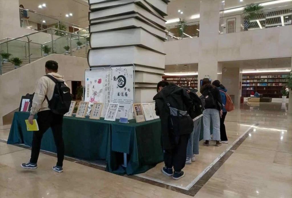 此次展出的作品包括《毛泽东勤俭节约的家风》《中华传统思想教育勤俭篇》等馆藏书籍,以及古人珍惜粮食的诗词和师生创作的勤俭节约的诗句,书体多样,内涵丰富。其中“静以修身,俭以养德”,流传至今依然倍受推崇,影响了一代又一代的年轻人不断完善自身;“由俭入奢易,由奢入俭难”,蕴含着深刻的道理,俭能立名,侈必自败,告诫我们勤俭节约的重要性,作品通过与繁体字的有效结合,吸引了广大书法爱好者前来观看;“一粥一饭,当思来之不易;半丝半缕,恒念物力维艰”“克勤于邦,克勤于家”等耳熟能详的名言,道尽了节俭是一生中食不完的美宴。