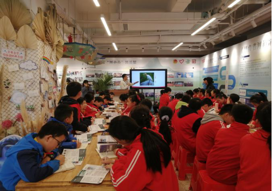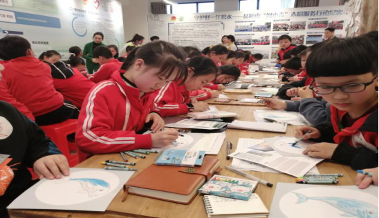 政法学院2018级学生、志愿者吴昊楠向小学生们主讲了“候鸟的欢歌”、“江豚的微笑”、“麋鹿的倩影”三个板块,学生们认真聆听讲解。随后,志愿者引导小学生们一起收看了长江渔民的访谈、江豚的生活习性视频以及长江保护普法视频,借此强化学生们保护珍稀动物以及母亲河的决心。志愿者还带领学生们进行了丰富有趣的游戏环节——“我来说,你来找”的竞猜游戏、“彩绘江豚”的绘画游戏以及“我手写我心”,学生们积极参与,现场气氛热烈,在欢快的游戏氛围中本次主题活动课圆满落幕。