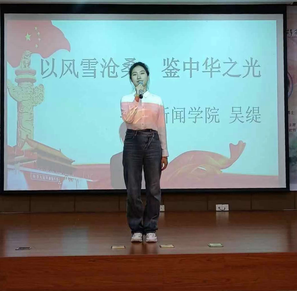 选手们伴着时而轻缓时而急促的乐声,以饱满情感的腔调激情朗诵,即使台上仍是那群熟悉的人,耳边是那段熟悉的腔调,但他们在两场比赛中显著的进步却带给了我们巨大的惊喜。随着一位位选手的上台表演,在场观众似乎能够跟随着朗诵内容,眼前闪过那一帧帧历史画面,倍感震撼。