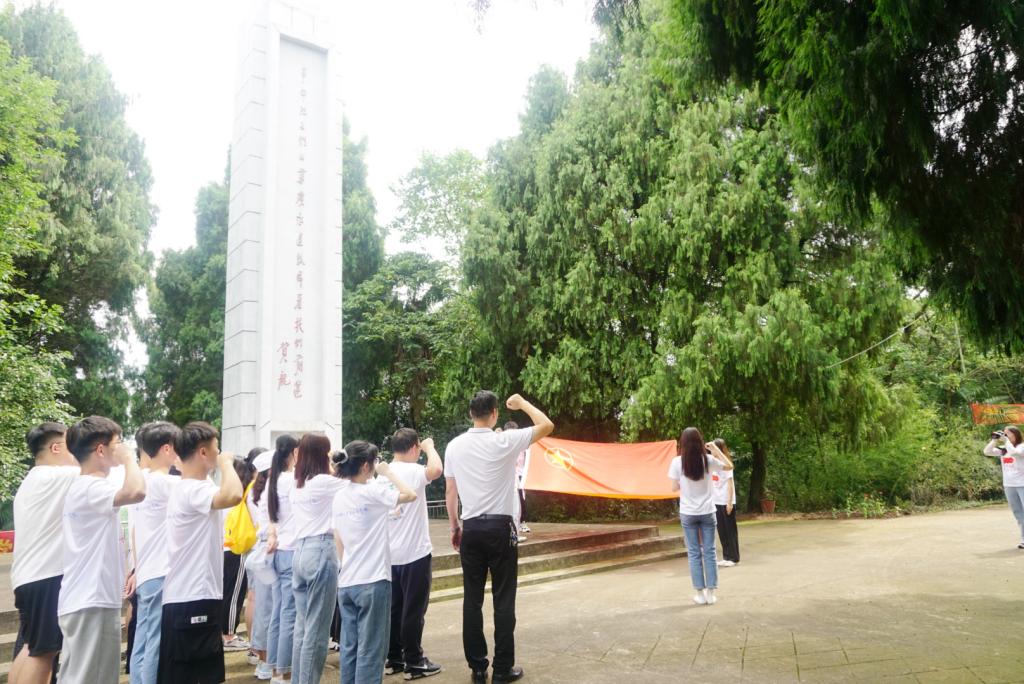 怀着激动与敬仰的心情,第一团队全体同学在实践团指导老师夏玉宁、谭将、王紫梦等带领下来到明碧山革命烈士纪念馆,通过讲解员的讲述,并在认真观看了大量的文字、图片、实物等的基础上,同学们深刻了解了明碧山革命先烈为反抗压迫和剥削,不惜抛头颅、洒热血的英勇奋斗史,感受到革命先烈大无畏的英雄事迹和崇高的思想品格,为明碧山革命烈士在中国共产党的领导下,克服当时极端残酷和恶劣的环境条件,忠诚于党,忠诚于人民,置个人生死于度外,为实现理想勇于献身的坚定信念而深深感动。随后,在明碧山革命烈士纪念碑前,全体同学面向鲜红的团旗,紧握右拳,满怀崇敬的心情重温了入团誓词。