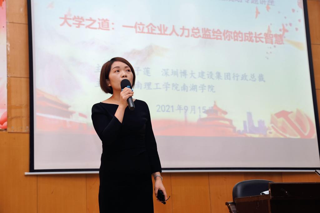 校园网讯 为帮助南湖学院机电系和工程系毕业年级的同学们更好地、有目标地就业,南湖学院于9月15日晚上7:30,举行了大学生职业生涯规划专题讲座,并邀请到深圳博大建设集团行政总裁刘子莲作为主讲人,南湖学院党委书记柳周峰、工程系党总支书记仇虎子、机电系党总支书记喻立平及深圳博大建设集团一行人参加此次会议。