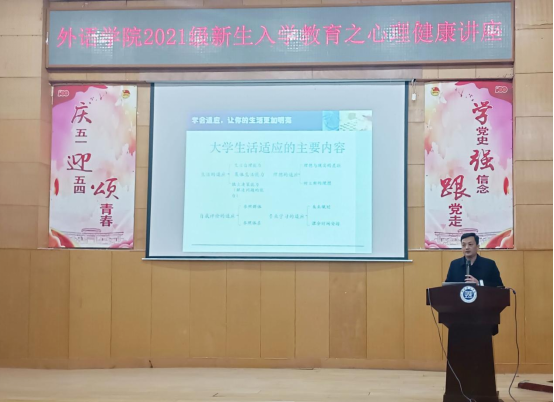 校园网讯11月8日,外语学院在东院综合楼学术报告厅举办2021级新生入学教育之心理健康讲座,由校党委学工部副部长毛伟主讲,外语学院党委副书记石红芳主持,外语学院2021级辅导员周伟芳及2021级全体新生参加讲座。