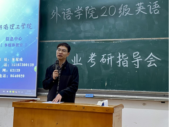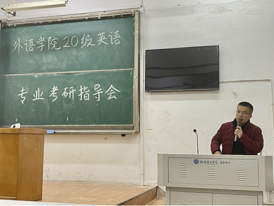 校园网讯 11月9日 为明晰考研相关流程,进一步加强学生对考研知识和经验的了解,外语学院于8T1召开2020级英语专业考研指导会,本次会议由潘洞庭教授和张广勋教授主讲,党委书记王敏、副院长宋以丰和党委副书记石红芳参加。