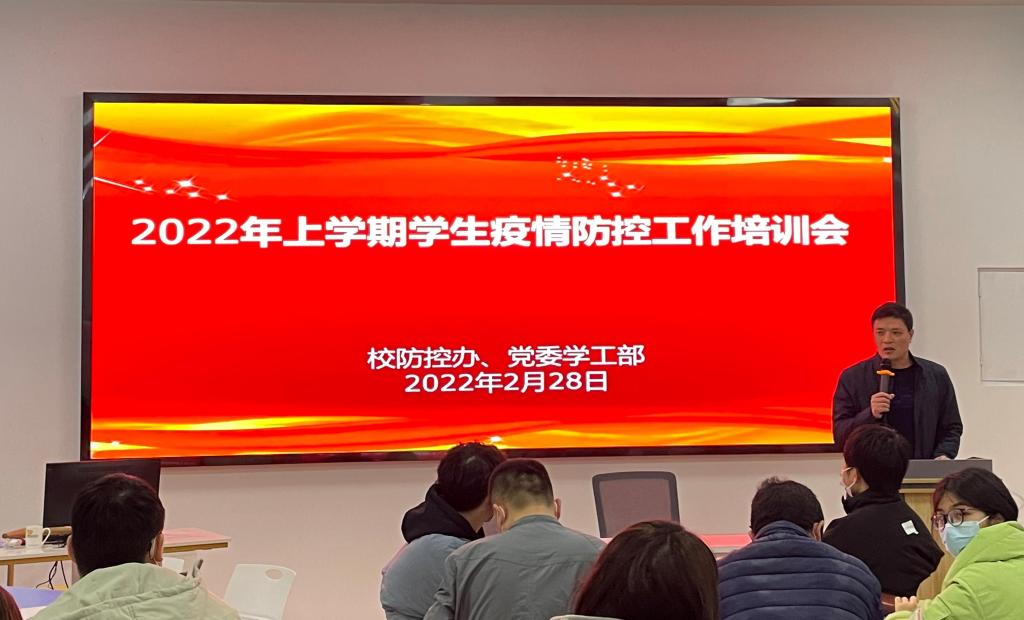 校园网讯 2月28日下午,我校在南院5号教学楼105多功能室召开了学生疫情防控工作培训会。校防控办副主任、后勤处党总支书记王云朋,党委学工部副部长曾谦,学工线疫情防控联络员刘尘轩,各学院学生疫情防控联络员共40余人参加培训会。会议由党委学工部副部长曾谦主持。