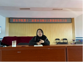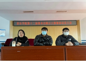 校园网讯 2月24日中午,音乐学院于1栋教学楼T2教室召开了湖南省第十二届普通高校音乐学本科专业学生基本功展示活动赛前动员会。本次会议由音乐学院副院长冯毅主持,2019级音乐学本科专业全体同学参加。