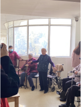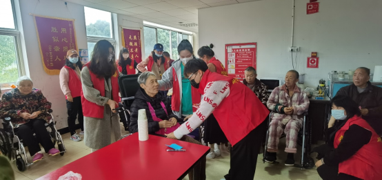 “我今天好几次差点没忍住哭了出来。一次是奶奶给我们唱毛主席语录歌的时候,说‘世界是你们的,也是我们的,但终究是你们的’,我突然强烈的意识到自己作为青年,已经接过了他们传给我们的接力棒,要更加努力奋斗才行。“爷爷奶奶们对世事不再那么的清楚明白,但始终清楚自己对祖国的热爱。一位爷爷伙伴亲切的叫他“老小伙”,一位奶奶不管唱歌还是吃水果都会叫上她的闺蜜,他们真的太可爱了,我从他们身上切切实实地感受到了世界的美好。”学生党员屈豆豆在谈及参加此次活动的感受时说到。