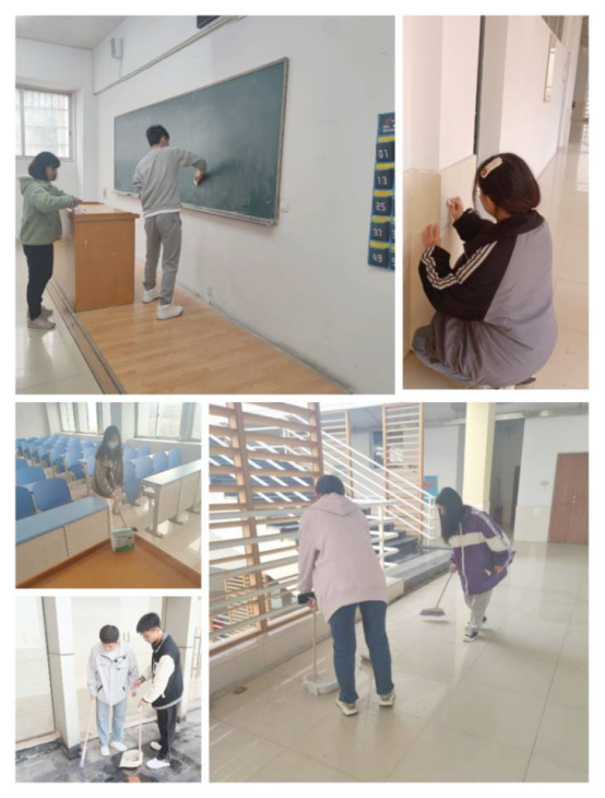 来自团学各部门的成员分区域对楼梯、教室和走廊进行了彻底的打扫。现场同学认真负责,积极完成活动。
