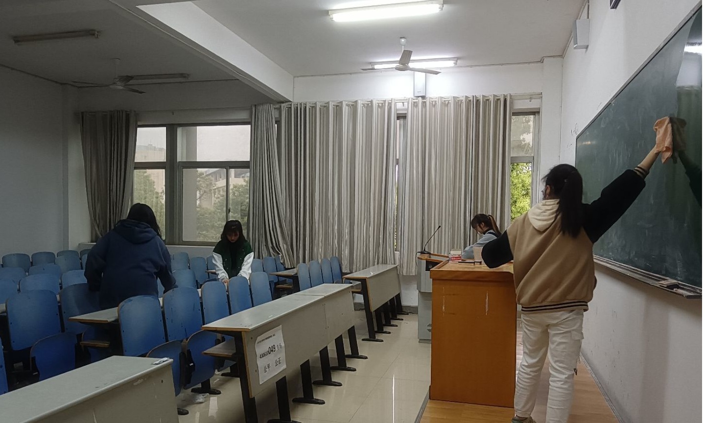 校园网讯 在5月1日国际劳动节来临之际,为进一步营造整洁、文明的校园环境,提高我校师生的环境保护意识,4月14日下午,中文学院2021级学生在15号教学楼2楼教室及走廊和1食堂周边区域开展本学期《劳动教育》课程第三次实践活动。